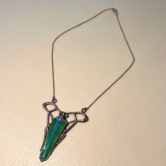 Estate Silver Jugendstil Pendant with Green and Turquoise Enamel Emerald Ash Borer Beetle Art Nouveau Necklace