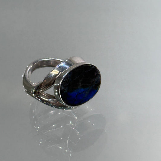 Estate Sterling Silver Double-shank Labradorite Cabochon Ring by Georg Jensen No A93