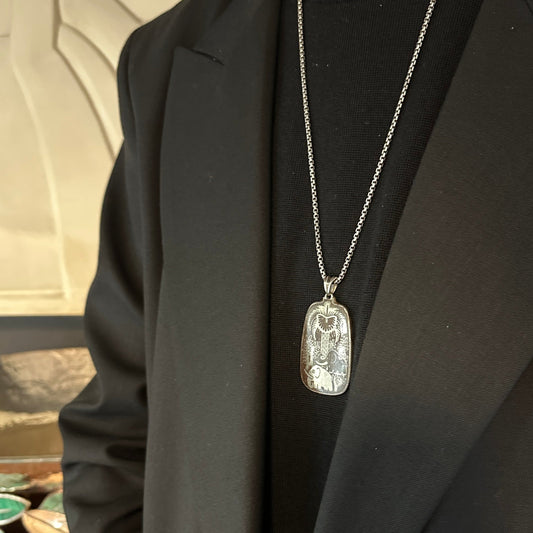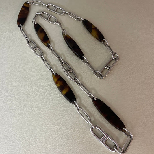 Estate Sterling Silver Italian Chain Necklace with Faux-Tortoise