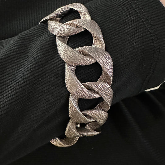 Estate Sterling Silver French Extra Large Curb chain Bracelet with Texture Detail