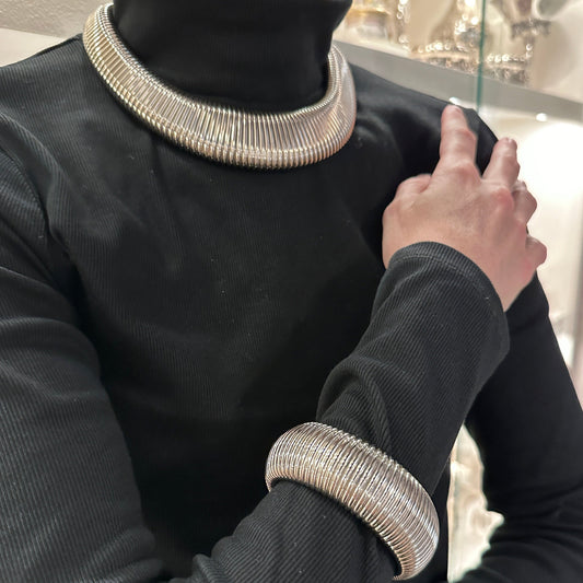 Estate Sterling Silver Italian Tubogus Snake Neck Collar by Unoaerre