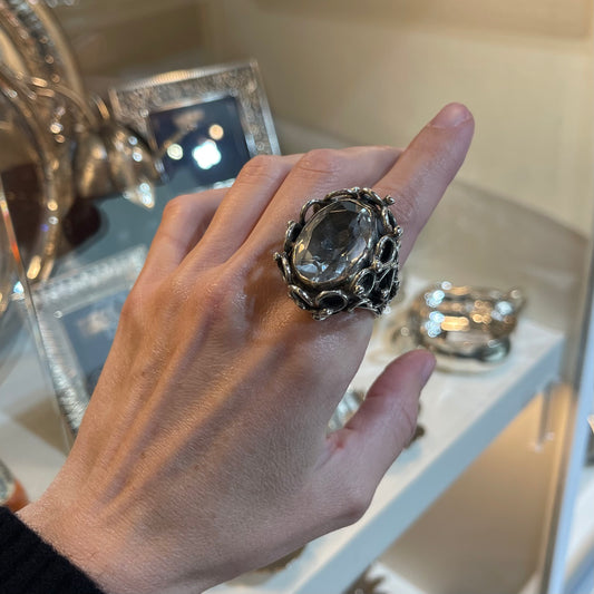 Estate Sterling Silver Brutalist Ring with Light Smoky Quartz by Rachel Gera