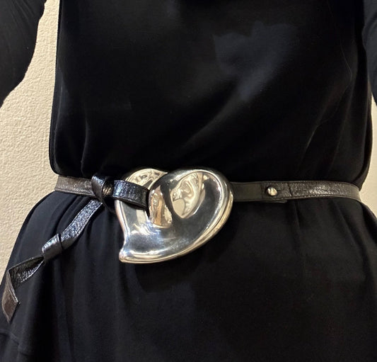 Estate Tiffany & Co. Sterling Silver Heart Buckle with Leather Belt by Elsa Peretti
