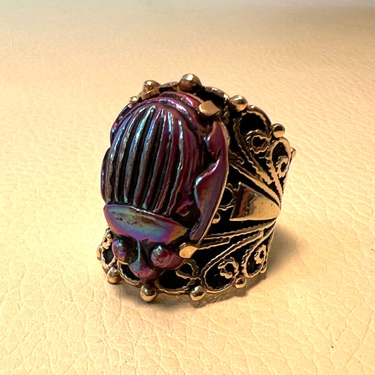 Estate Tiffany & Co. Favrile Scarab on Handmade 14K Gold Ring