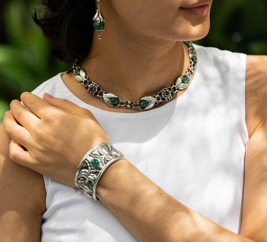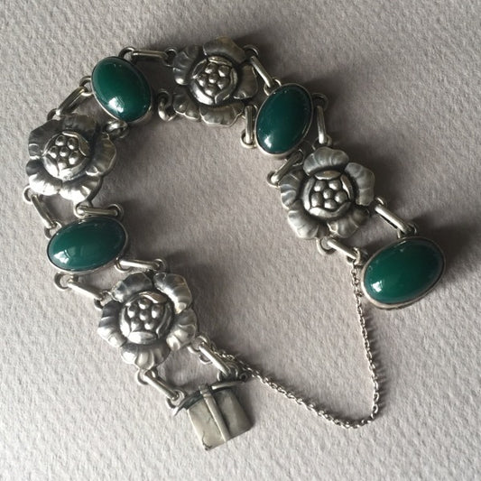 Georg Jensen 830 Silver "Blossom" Bracelet No. 12 with Green Chrysoprase