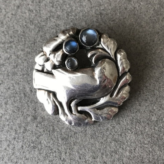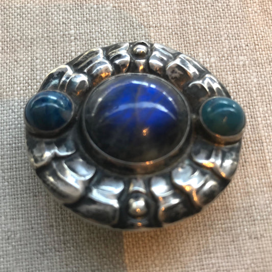 Georg Jensen 826 Silver Antique Brooch No.49. with Labradorite Stone