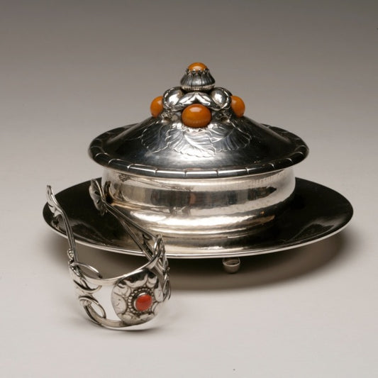 Georg Jensen 826 Silver Butter Dish and Tongs from 1906