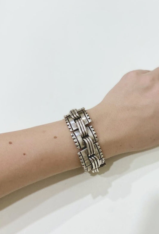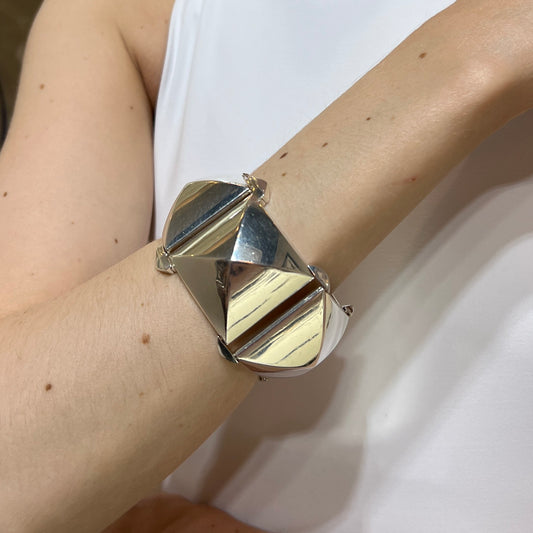 Hermès Sterling Silver Pyramid Bracelet with Hermès Box