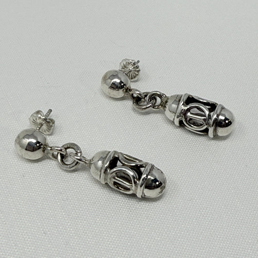 Hollow Link Sterling Silver Drop Post Back Earrings