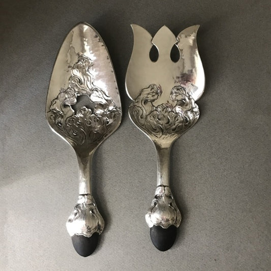 Horsens Solvarefabrik 830 Silver Fish Servers With Ebony