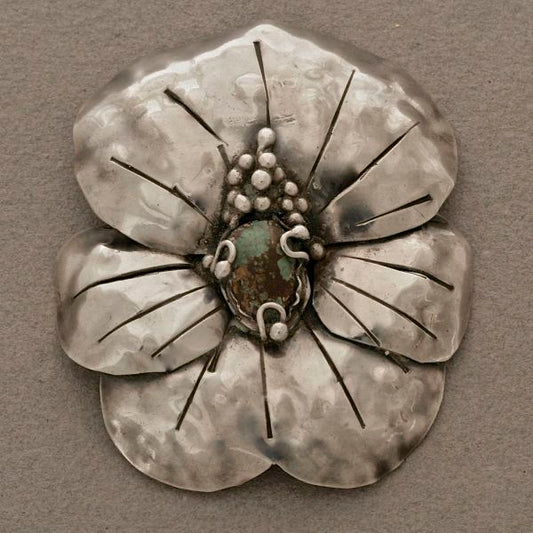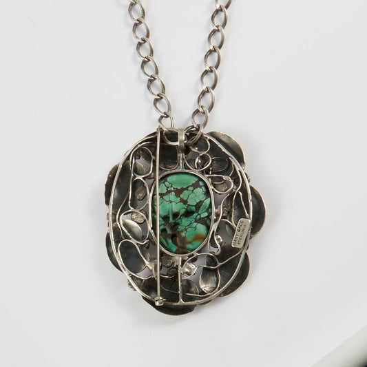 Large Oval Sterling and Natural Turquoise Brooch Pendant by Mary Gage