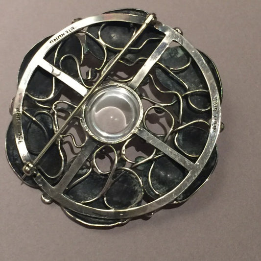 Mary Gage Sterling Silver Brooch with Rock Crystal Cabochon