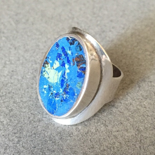Los Ballisteros Sterling Silver Modernist Ring with Azurite