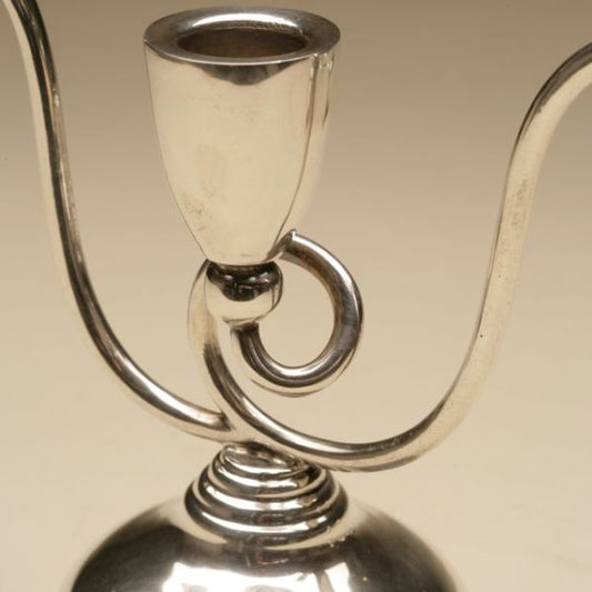 Mexican Sterling Silver Pair of Three Light Candelabra