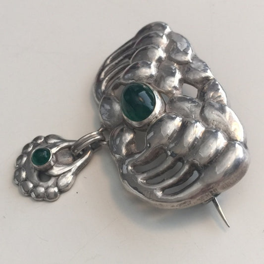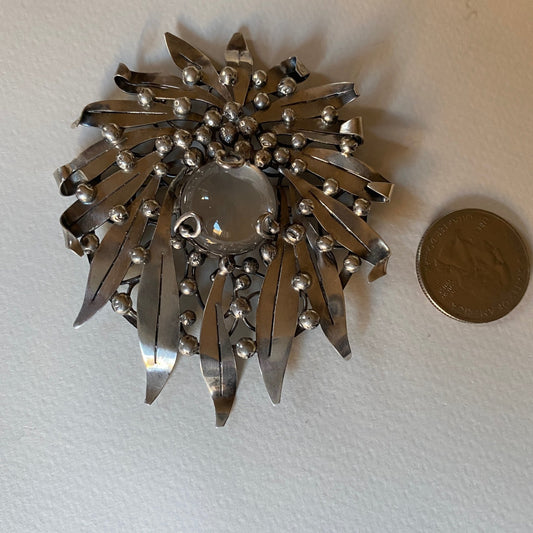 Sterling Silver Foliate Motif Brooch with Rock Crystal by Mary Gage