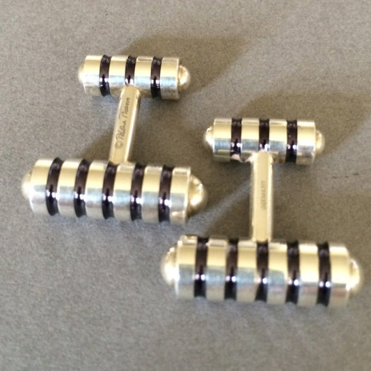 Tiffany & Co. Paloma Picasso's Groove Cufflinks Sterling Silver with Black Enamel