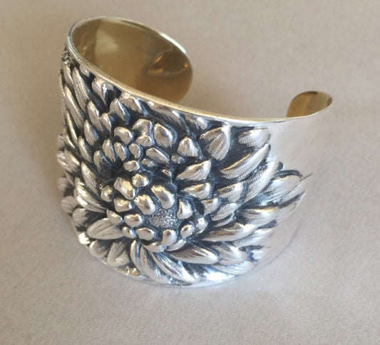 Sterling Silver "Repousse" Sunflower Cuff Bracelet By Galmer