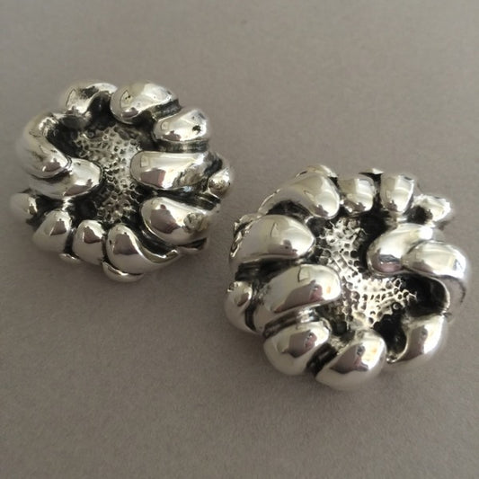 Sterling Silver "Repousse" Wild Dahlia Earrings By Galmer