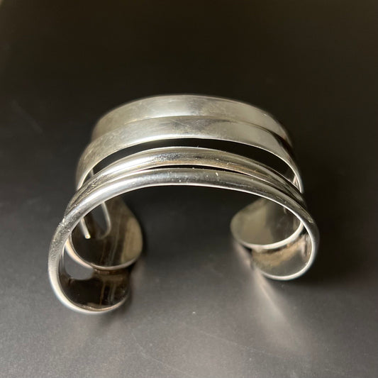 Sterling Silver Artisan Modernist Wave Cuff Bracelet by T. Waca