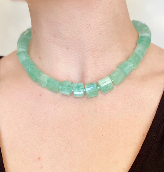 Vivid Natural Aquamarine Necklace with Platinum and Diamond Clasp by Walter Dickhaut