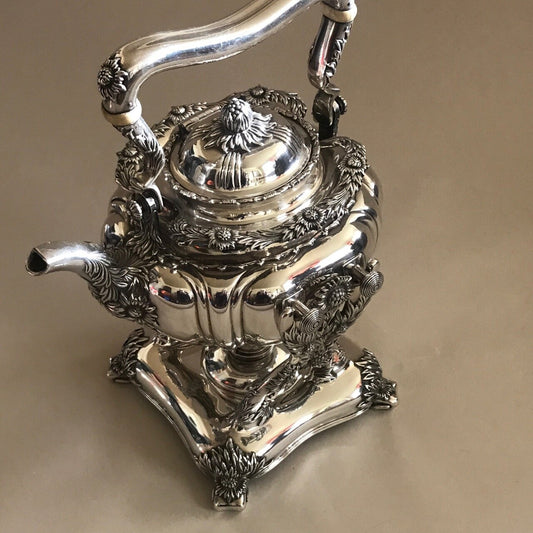 Tiffany Chrysanthemum Sterling Silver Tea Kettle on Stand