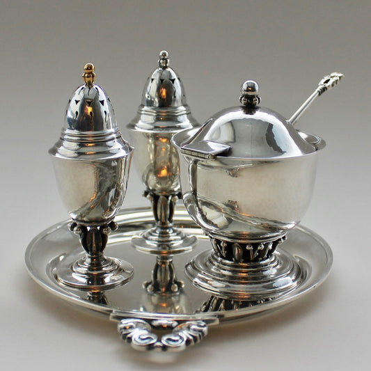 Vintage Georg Jensen Sterling Silver Condiment Set Condiment Set No 180 with Acorn Tray