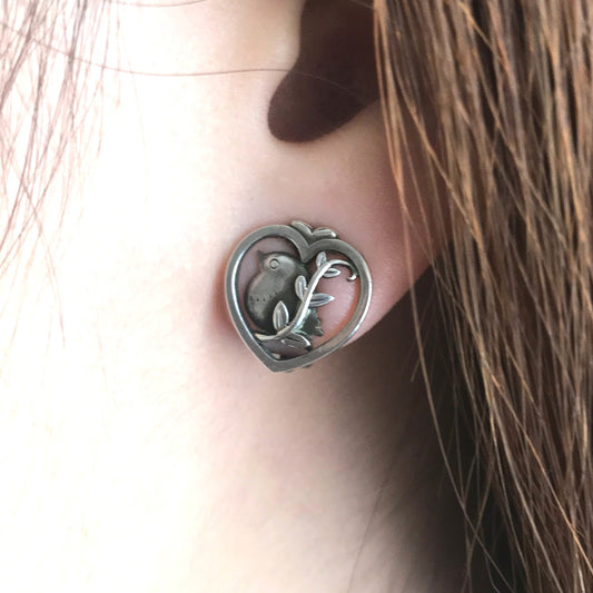 Georg Jensen Sterling Silver Heart and Bird Earring No. 103 by Arno Malinowski