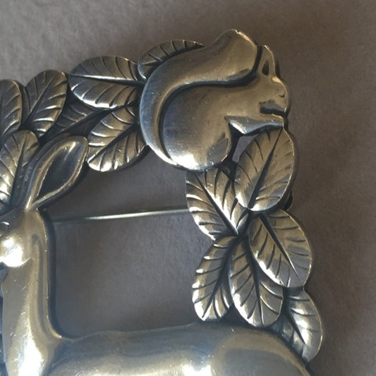 Georg Jensen Sterling Silver Deer and Squirrel Brooch No. 318 by Arno Malinowski