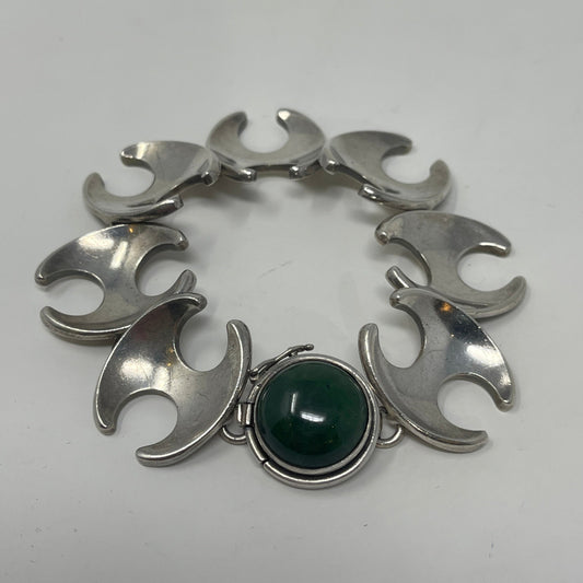 Estate Georg Jensen Sterling Silver Modernist Bracelet with Green Stone by Henning Koppel No. 130B