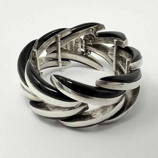 Estate Antonio Pineda 970 Silver Obsidian Crescent Shape Bracelet