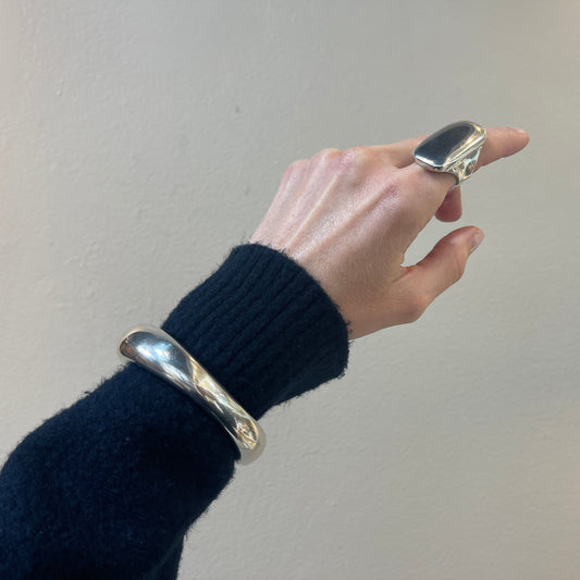 Estate Sterling Silver Wide Oval Bangle by Jondell