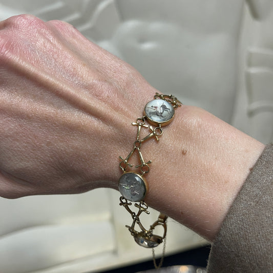 Estate 14KT Gold Snaffle Bracelet with Reverse Intaglio Depicting Equestrian