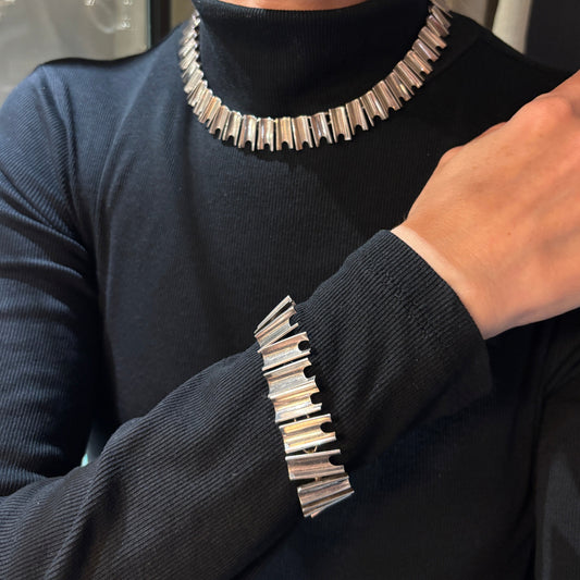 Estate Taxco Sterling Silver Modernist Bracelet with Concave Segments
