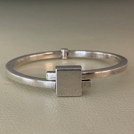 Estate Sterling Silver Geometric Hinged Bangle by Gucci