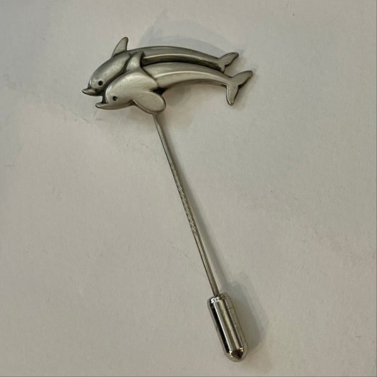 Estate Georg Jensen Sterling Dolphin Silver Stick Pin by Harold Nielsen, Design No. 129