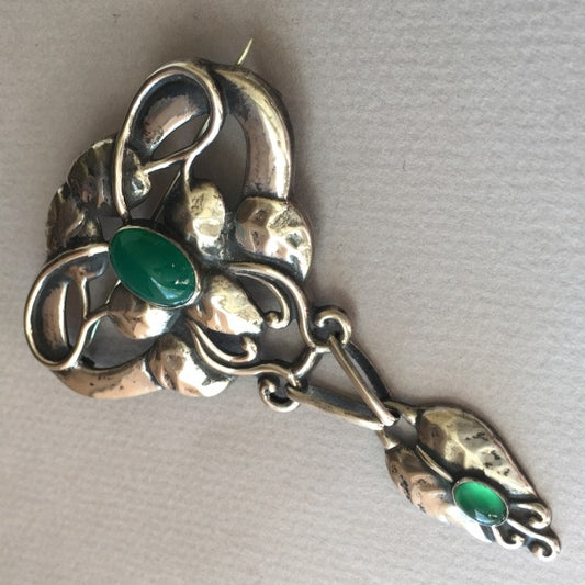 Georg Jensen Sterling Silver Brooch No. 72 with Chrysoprase Cabochon