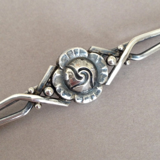Georg Jensen Sterling Silver Rose Bar Pin No. 36 by Harald Nielsen