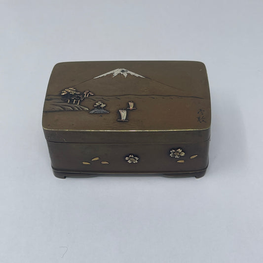 Estate Small Japanese Bronze and Mixed Metal Meiji Box