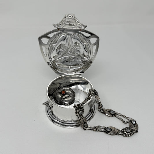 Estate Sterling Silver Art Nouveau Keepsake Box with Hinged Closure