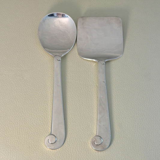 Estate Georg Jensen Inc. Lapaglia Sterling Silver Art Nouveau Salad Server & Fork Set No. 113