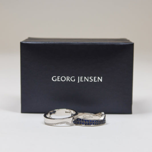 Georg Jensen Two-Piece 18K White Gold "Fusion" Ring with Diamonds and Sapphires by Nina Koppel