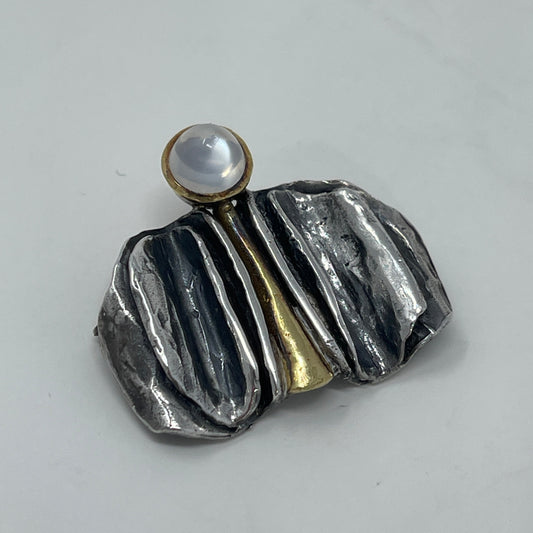 Perli Werkstatte Gilded Sterling Silver and 24KT Gold Vermeil Brooch with Moonstone Cabochon