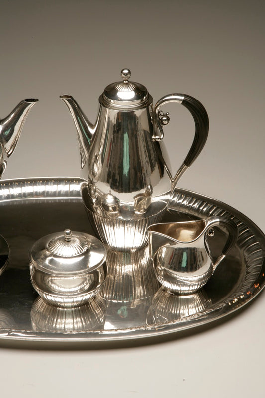 Estate Georg Jensen Sterling Silver Mini Bachelor "Blossom" Coffee Set No. 2H on Tray No. 2P