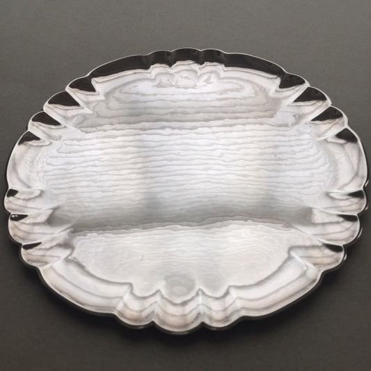 Estate Georg Jensen Sterling Silver Round Tray with Scalloped Edge by Oscar Gundlach-Pedersen No. 519B