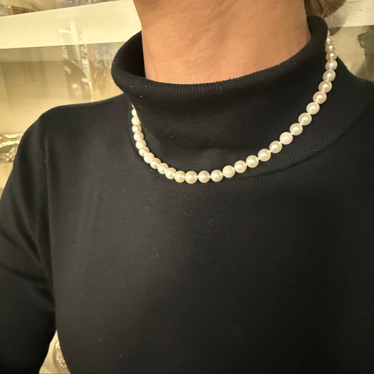 Estate Graduated Akoya Pearl Choker with 14KT White Gold Clasp
