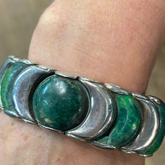 Estate William Spratling Sterling Silver and Malachite Cuff Bracelet