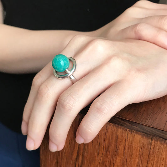 Estate Hans Hansen Sterling Silver with Amazonite Ball Modernist Ring
