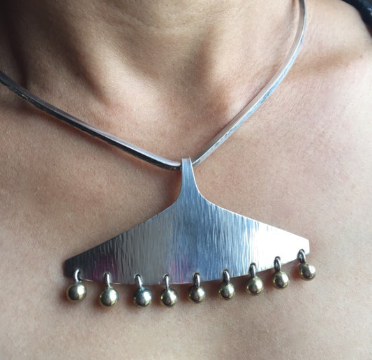 Estate Hans Hansen Sterling Silver with Gold Pendant on Sterling Silver Neck Ring by Bent Gabrielsen No. 366