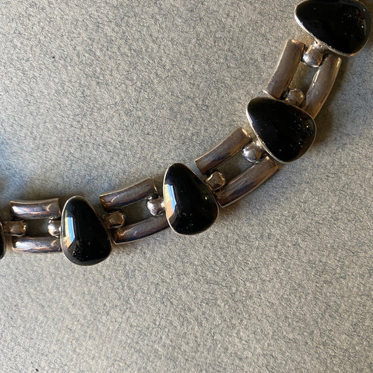 Estate Sterling Silver and Onyx Collar Necklace by Antonio Pineda
