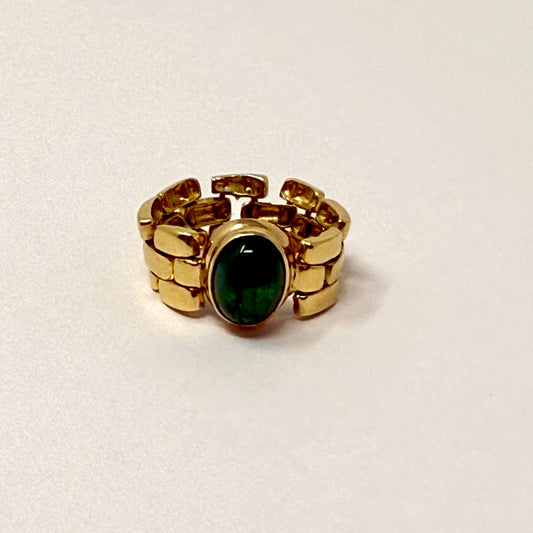 Estate African 18k Yellow Gold Chain Ring with Oval Emerald